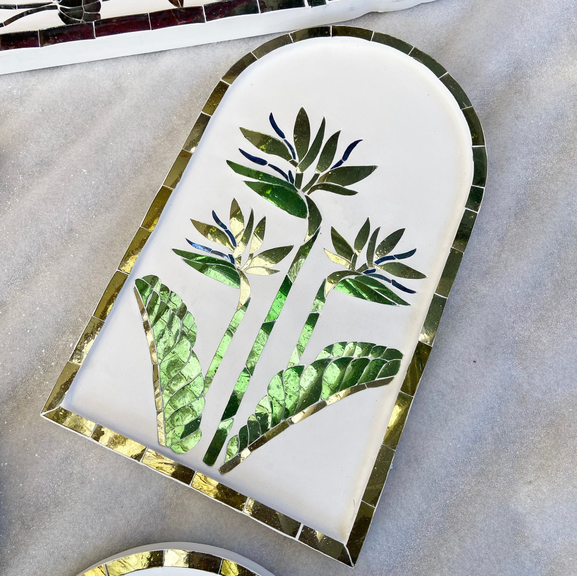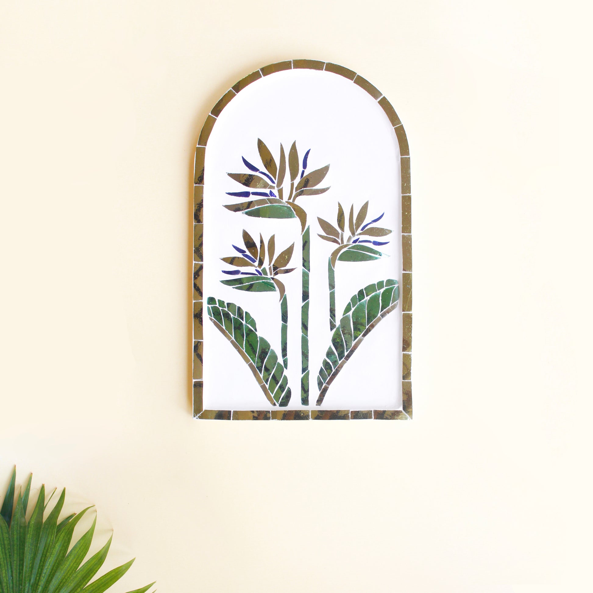 Graceful and expressive, the Bird of Paradise Thikri Artwork captures the elegance of this iconic bloom through luminous mirror mosaic.