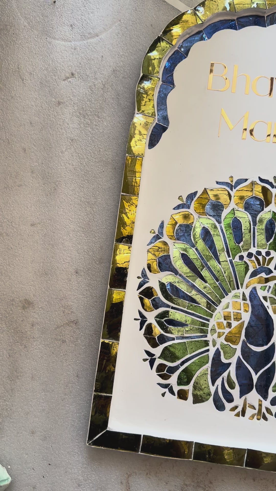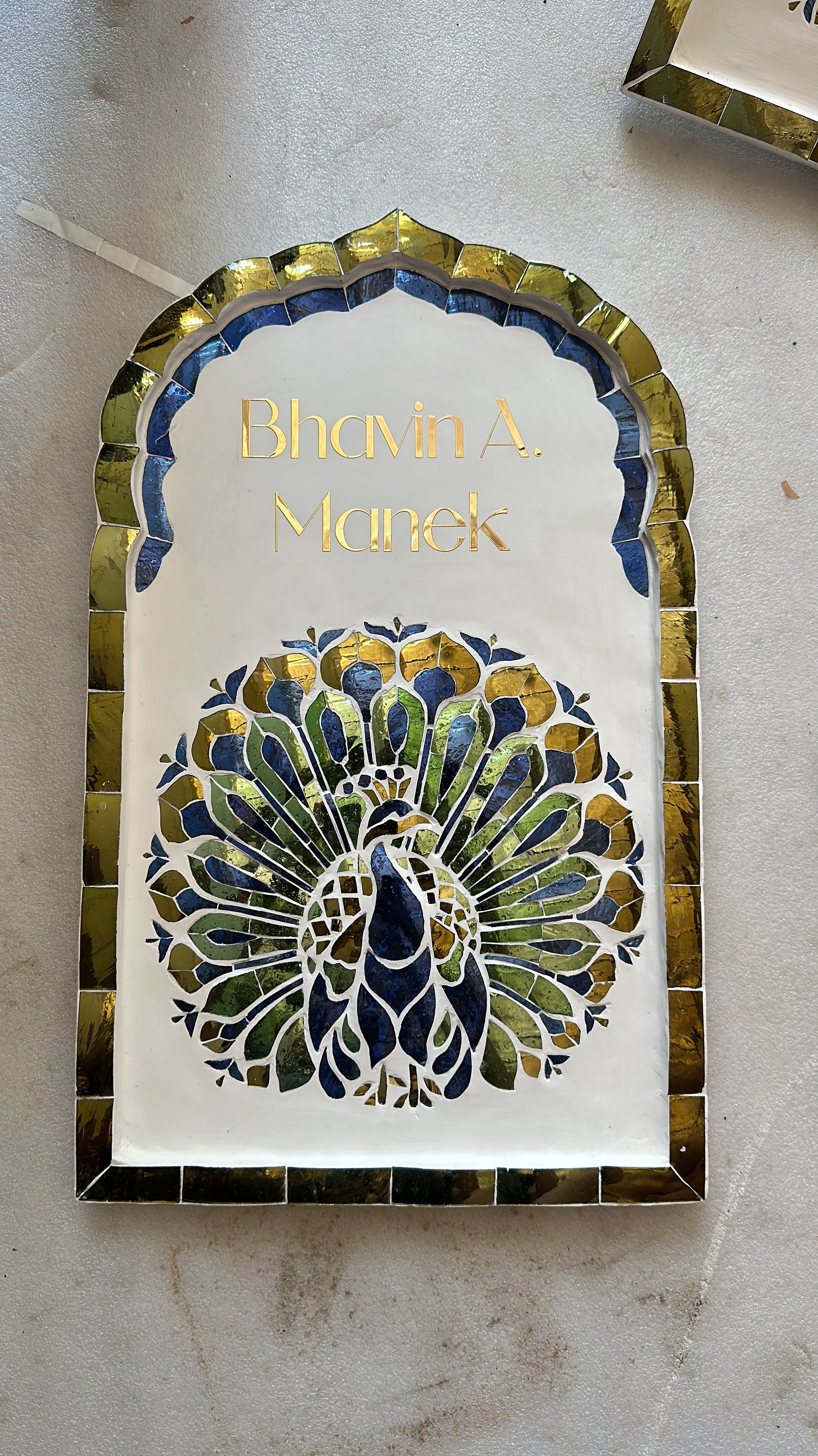 Inspired by the graceful form of the Mayura (peacock) a symbol of beauty, prosperity, and protection - this handcrafted nameplate brings regal charm and positive energy to your home.