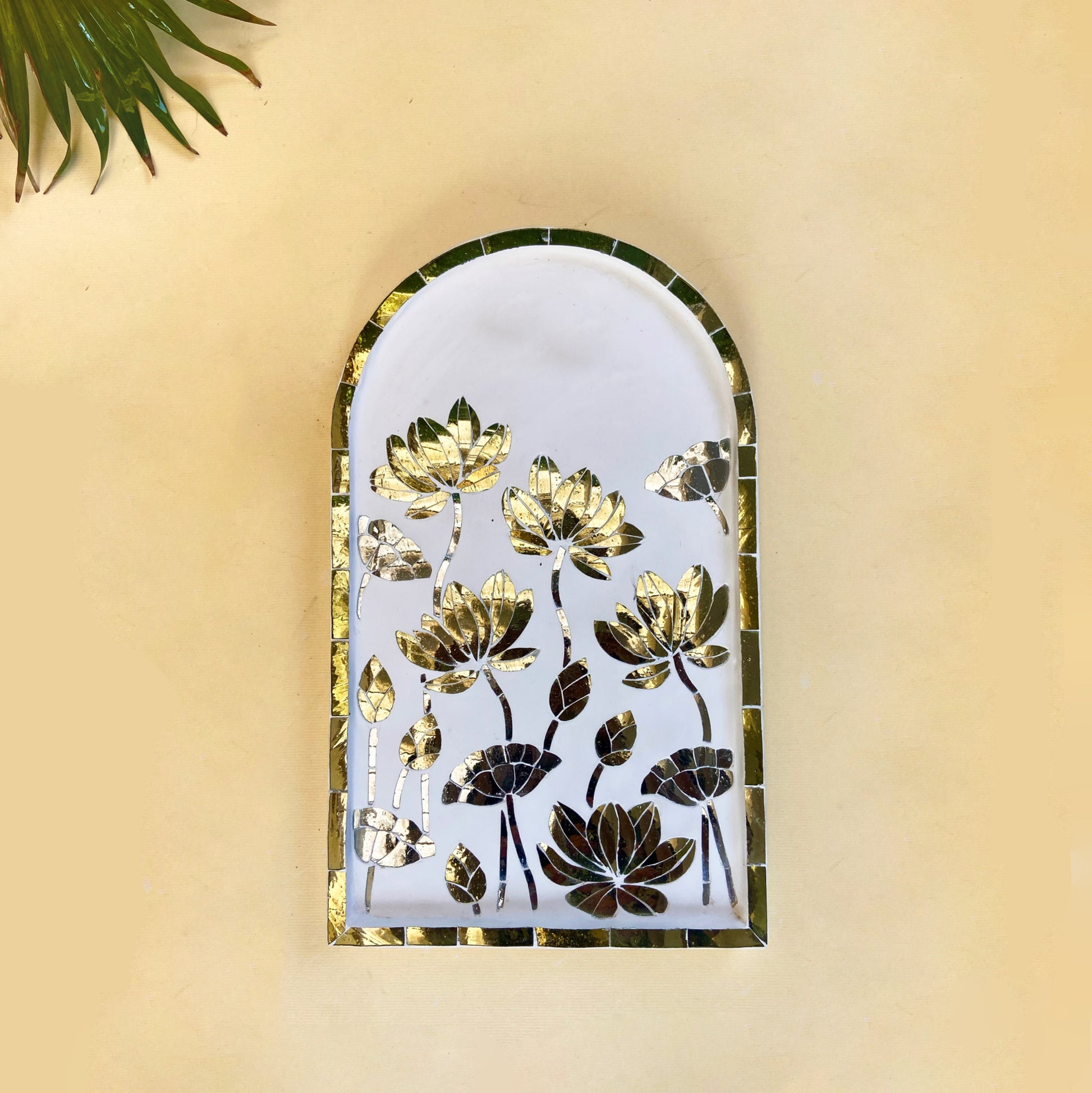 Thousands of tiny mirror elements are shaped and placed by hand, allowing the surface to softly glow as light moves across it. Created using centuries-old Thikri techniques, this artwork supports the preservation of India’s mirror inlay heritage while bringing a soulful presence into modern spaces.